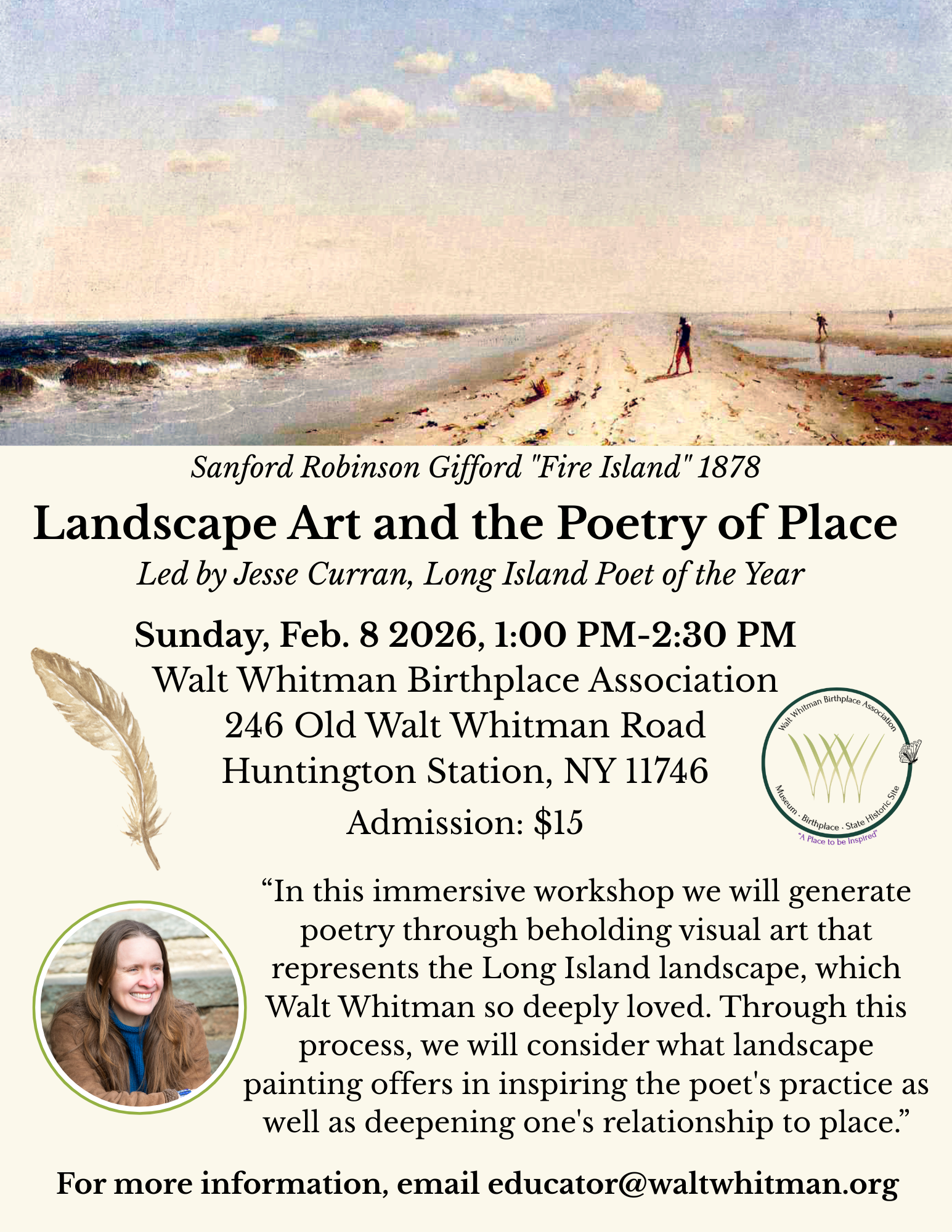 The Friends of Cedarmere, William Cullen Bryant’s historic home on Long Island, have announced that Jesse Curran has been named 2023 Poet-in-Residence. William Cullen Bryant (1794-1878) was a poet, journalist, and long-time editor of the New York Evening Post.
